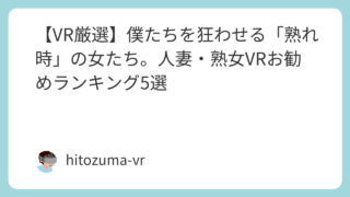 ランキング5選 【VR厳選】僕たちを狂わせる「熟れ時」の女たち。人妻・熟女VRお勧めランキング5選 「若さには出せない『余裕』と、隠しきれない『母性の色香』。求めていたのは、この包容力という名の快楽だった。」これまで数多くのVR作品をレビューしてきましたが、今回はその中から「40代前後の熟れた魅力」を最大限に堪能できる5作品をランキング形... 2026.02.21 ランキング5選
